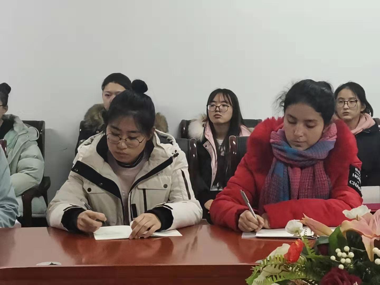 为了认真贯彻落实全国教育大会、全国高校思想政治工作会议和思想政治理论课教师座谈会精神,围绕“培养什么人、怎样培养人、为谁培养人”这一根本问题,扎实推动我院领导干部牢固树立“三全育人”理念和“六个下功夫”的育人要求,进一步加强班风建设、学风建设和校风建设,学院院长于沐琳同志于12月26日在金融楼315 会议室与金融系2019级金融学1班进行对接并参加了主题班会,金融系党总支书记靳生、副书记高丽菊、辅导员高忠贵参加了班会。