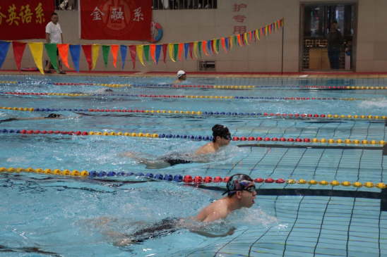 他们用热爱与拼搏在泳池中描绘出轮轮波涛,青春的热浪在泳池中绽放出朵朵浪花,在碧水蓝池中呈现出一道速度与技术较量的风景线,充分展现了金融系学子的青年风采。