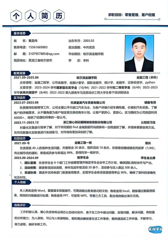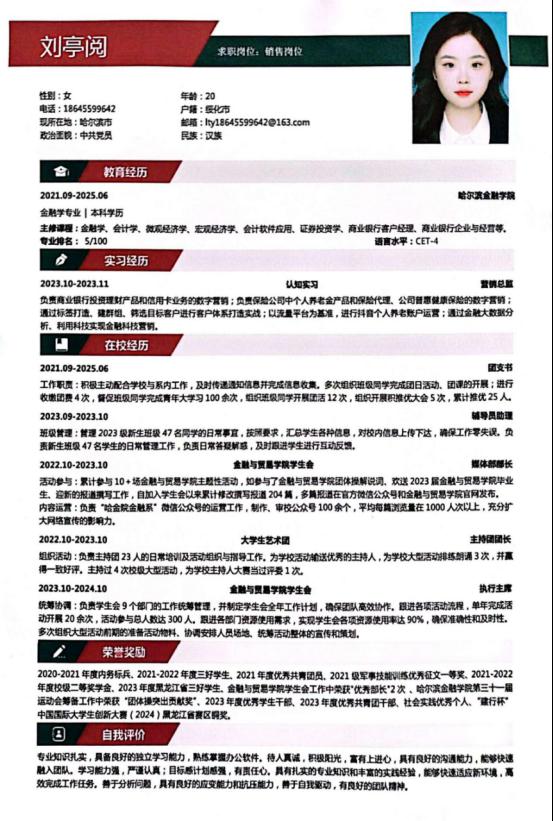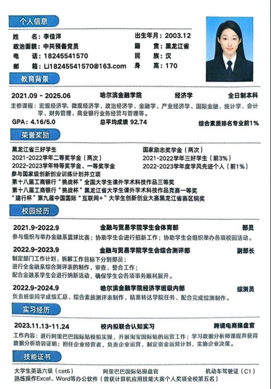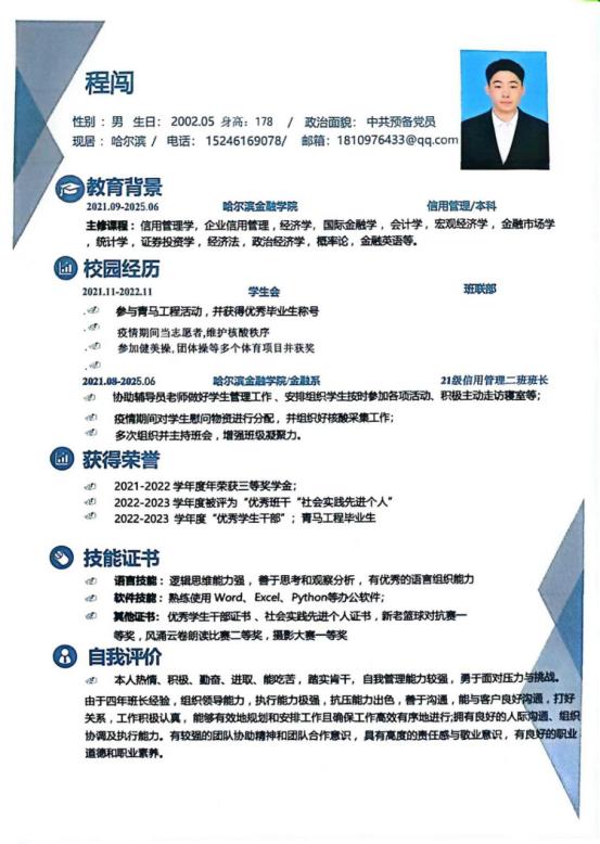 本次简历大赛从学生实际需求和现有就业形势出发,为同学们提供了一个学习与展示平台,帮助同学们制作更加符合求职市场需求的个人简历。通过举办此次简历制作大赛增加了同学们参与就业竞争以获得优质就业机会的信心,有效推进了就业工作,助力金融与贸易学院更高质量、更有效就业。