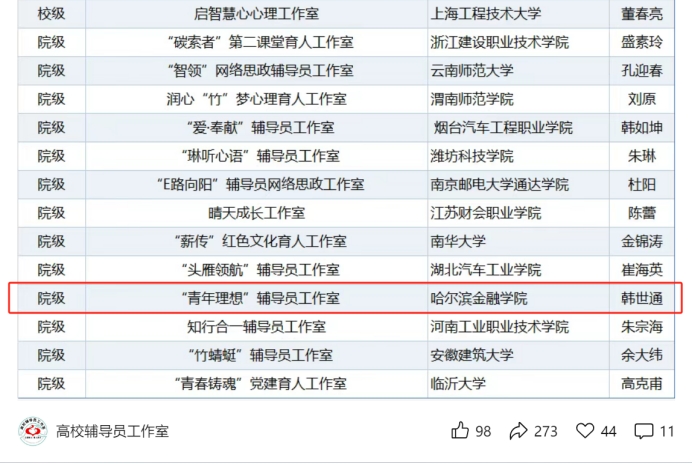 喜报丨我院“青年理想”辅导员工作室成功入选第四批高校辅导员工作室“联建共建”名单