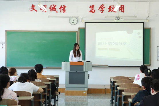 信用管理二班的宋佳慧同学分享了自己一志愿上岸黑龙江大学金融专硕的宝贵经验;同班的赵旭同学分享了自己春招成功加入中国农业银行的经历,他们的故事为大家提供了宝贵的就业经验,激励着学弟学妹们成为更好的自己。