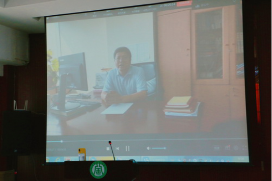 其次,王滨通过远程视频发表了讲话,把近几年来我院与工行在学生实习、就业方面的合作数据进行了总结,展示了我院与工行产教融合推动的非常扎实,成果丰硕。此次实习由于受疫情影响,主要以线上实习为主,王滨向同学们介绍了线上实习的具体情况,并预祝同学们在此次实习工作中有所收获,对今后金融从业工作有所助益。