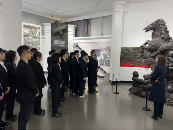 在最后一个展厅中,金融系学生代表们重温入党誓词,铭记先烈们抛头颅洒热血的革命精神,表达对革命烈士的崇敬和缅怀之情,将对英烈们的深切缅怀化为强烈的责任感和使命感,以此鞭策自己不断奋进,不断向前。