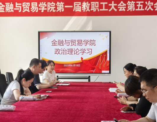 2025年6月18日,金融与贸易学院党总支按照党委统一安排部署,精心筹划,结合金融与贸易学院实际工作在会计楼220开展政治理论学习,此次学习由党总支书记高丽菊主持召开,金融与贸易学院全体教师参加。