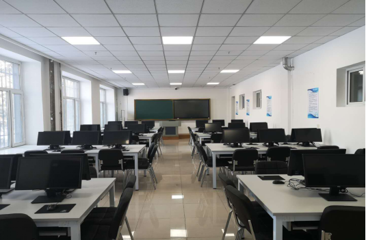 该实验室为云桌面实验室,配备云终端、显示器,教师讲台多媒体设备、网络设备、示教白板,维拉黑板和电子大屏等。