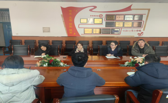 为加强和促进2025届毕业生就业,确保寒假期间就业工作稳步推进,金融与贸易学院于2025年1月2日下午两点召开毕业生就业工作领导小组会议。本次会议由党总支书记高丽菊书记主持,院长张涛、党总支副书记柳宏波、副院长史宁,毕业生辅导员范家萌、周泽英、贾程参加本次会议。