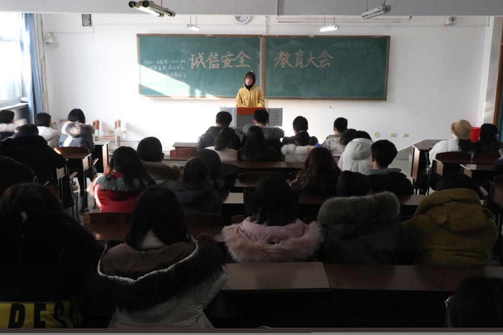 本学期期末考试在即,同学们也即将迎来愉快的寒假,为切实做好金融系期末考试诚信教育和安全教育工作,提高同学们对诚实守信重要性的认识并增强自身安全防范意识,在促进金融系学风建设的同时,保障同学们能够度过一个安全愉快的假期,金融系多层次、多角度地开展了诚信教育与安全教育主题班会。