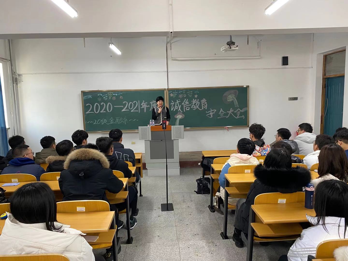 近期我校即将迎来英语四、六级考试以及2020-2021学年第一学期期末考试。为切实做好四、六级考试和期末考试,金融系在2020年12月7日-10日进行了诚信教育暨安全教育主题班会。会议上,全体辅导员老师引导学生提高诚信品德素养和安全防范意识,同时,就系学生工作会议上的相关内容向同学们进行了传达,对同学们开展了深入的诚信教育和安全教育。